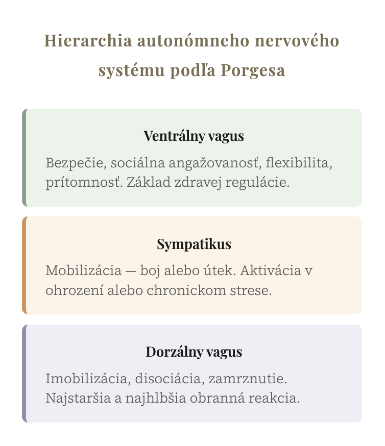 Porges identifikoval tri evolučné vrstvy autonómnej regulácie: